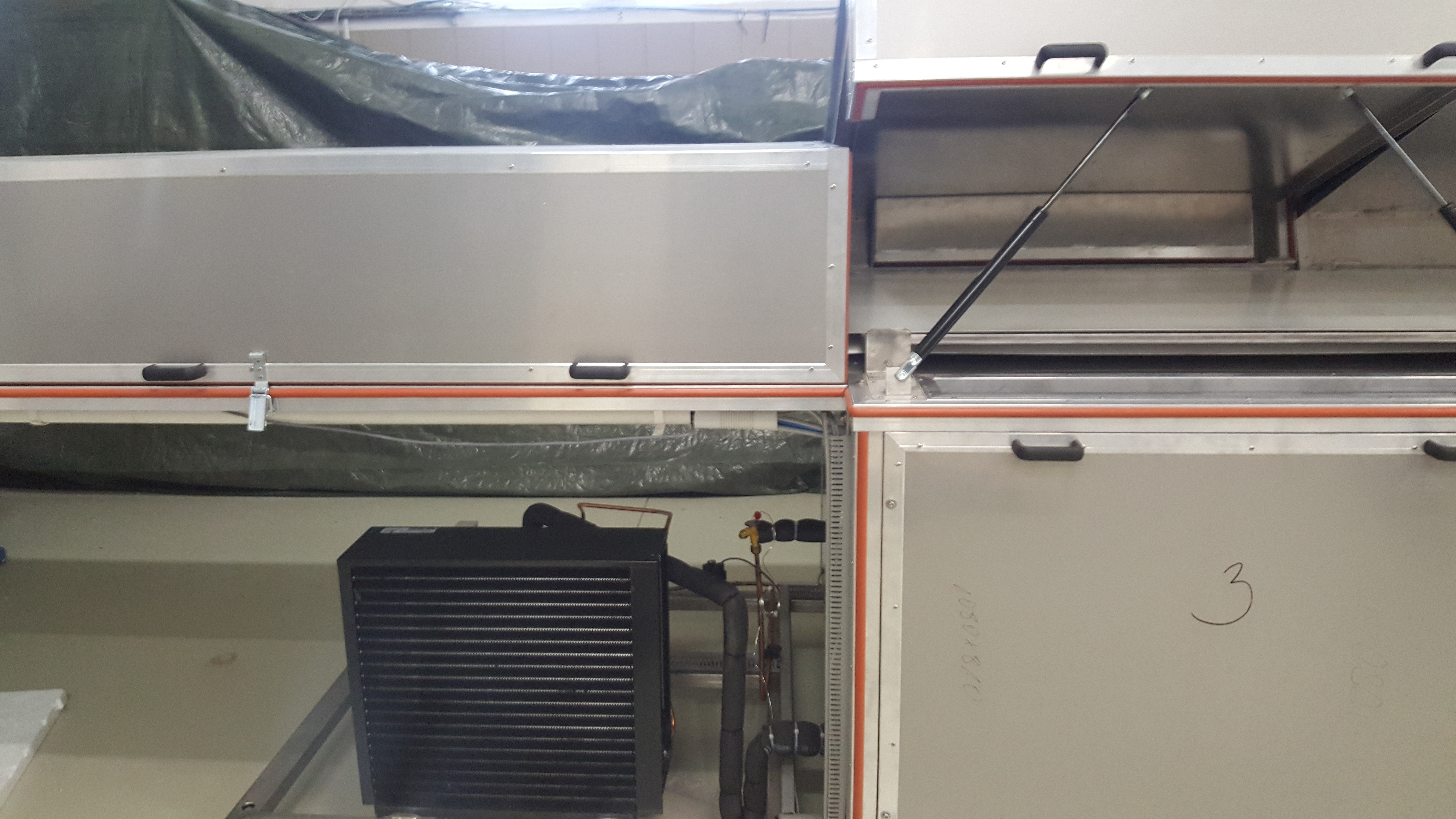 Wyroby przeznaczone do schładzania przygotowane wcześniej na innych urządzeniach (np. na oblewarce czekolady) wprowadzane są samoczynnie do tunelu chłodniczego za pośrednictwem taśmy transportera. Następnie wprowadzone do tunelu wyroby są oziębiane w drodze wymiany ciepła, jaka odbywa się pomiędzy przemieszczającymi się na ruchomej taśmie wyrobami, a schłodzonym powietrzem. Schładzanie powietrza odbywa się w chłodnicy (skraplaczu), znajdującym się w zespole chłodniczym (rys. 1 poz. 2), a jego ruch wywołany jest przez wentylator. Powietrze to znajduje się w obiegu zamkniętym.